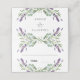 En modern elegant. En vit bakgrund som dekorerats med lavender-blommigtar, blommor och eukalyptus grenery. Anpassa och namn. Lägg till gästerna namn och deras bordsnummer för hand.