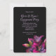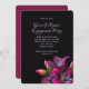 Lily blommor på svarta inbjudningar före bröllopsfesten. Mörkens rosa och lila blommor i nedre hörnet av svarta inbjudningar kan användas för alla typer av duschar, förlovningsfester eller repetitionsmiddagar. Text är blekens lila med namn och party i större skript. Använda det omedelbara hämtningsalternativet till inbjudan-gäster med digitala inbjudningskort.