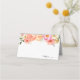 Plats kort med citrusfrukter och apelsiner med rosa blommor. Skriv in gästernas namn och bordnummer.