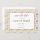 Söta blommiga spara datum inbjudningskort med blommor och rosa fjärilar för bröllop eller någon annan tillställning.