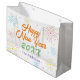 En färgfull Nyårsafton firande party-presentväska i lägenhet stil med vit bakgrund och färglöst fyrverkeripjäs inslag. Det nya årets presentsäck i firande är mycket lätt att anpassa. Du kan ändra texten som du vill. Den här produkten är redot att lindra nyårstunderna!