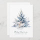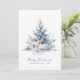 En elegant vattenfärg baby hjort är inkapslad i en rustisk snövinter i gräs träd. God jul är skrivet i ett enkelt skript nedan, med ytterligare en rad nedan för att anpassa designen ytterligare. All text på det här kortet kan redigeras. Det finns ett julmeddelande som du kan anpassa dig till på baksidan.