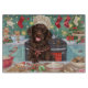 Fånga helgdag glädje att baka med den här härliga scenen med en glad kock omgiven av julgransar och festliga dekorationer. En hjärteberande firande av årstidens sötaste traditioner.