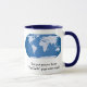 Mugg med blå världskarta med ord "Detta bevisar bara att Flat Earth-killarna var höger!" får dina medarbetare att göra en dubbla!