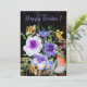 Hitta detta söta lila blå rosor och blommor Österländskt vykort på svart bakgrund med nyanser av rosa och grönt.