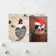 Modern Rustik Hjärtformad Julkort med Barkträ och Familjefoto