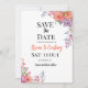 Fira din speciella dag med detta eleganta blommiga "spara datum"-kort med akvarell-orange och lila blommor. Perfekt för bröllopsannonsering under alla årstider, denna anpassningsbara bröllopsmall för "spara datum" är utformad för att imponera på dina gäster med sin romantiska, moderna och tidlösa look.
