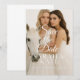 Meddela din speciella dag med vår moderna, eleganta rädda-datum-fotografi för bröllop med modern script, designad för att vackert fira din kärlekshistoria. Med två fantastiska bilder som sträcker sig till kanterna, fångar detta kort det hjärtliga bandet mellan två kvinnor i en tidlös och romantisk miljö. Elegant, handskriven kalligrafi lägger till en mjuk, sofistikerad touch, medan den rena, moderna layouten säkerställer en stilren och polerad presentation. Perfekt för par som söker ett modernt men klassiskt tillkännagivande, är denna dubbelsidiga design ett meningsfullt sätt att dela din glädje och sätta tonen för din oförglömliga fest.
