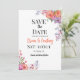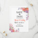 Fira din speciella dag med detta eleganta blommiga "spara datum"-kort med akvarell-orange och lila blommor. Perfekt för bröllopsannonsering under vilken säsong som helst, denna anpassningsbara bröllpsmall för "spara datum" är utformad för att imponera på dina gäster med sin romantiska, moderna och tidlösa look.