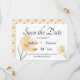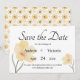 Vackra eleganta bröllopsinbjudan för att spara datumet med fina gula blommor. Koordinera din bröllopspapper med matchande bröllopstillbehör i vår butik