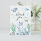 Ett år under havet Födelsedags kort för havsdjur, Skicka en våg av tacksamhet med detta söta ”Ett år under havet” havs-tema tackkort! Perfekt för att fira ditt lilla barns första födelsedag, har detta kort charmiga akvarell havsdjur som sköldpaddor, valar, delfiner, fiskar och koraller, alla mot en mjuk pastell undervattensbakgrund. De lekfulla teckensnitten och söta marina illustrationerna gör det till en perfekt matchning för ditt havs- eller nautiska festtema. Personifiera med ditt barns namn och ett hjärtligt meddelande för att tacka gästerna för deras kärlek, presenter och för att göra din lilla enes speciella dag verkligt magisk.