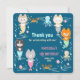 Ett sjöfartstemat födelsedags-platt tackkort dekorerat med söta sjöjungfrukatter.