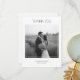 Ett snyggt, modernt sätt att tacka dina gäster—det här Bröllopsfoto Tackkortet har dina två favoritbilder och en ren, minimalistisk layout. Framsidan visar din bild med en djärv men enkel ”Tack”-text, medan baksidan ger dig gott om utrymme för en hjärtlig, personlig notis.