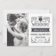 Elegant spara datuminbjudan som förbereder gästerna för ett kommande bröllop. Anpassa text. Vintage stil med luftballong inslag. Ersätt även platshållarfoto med ett eget. Svartvit färg.