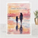 En andningsväckande akvarellmålning av en mamma och dotter som går hand i hand längs en lugn strand vid solnedgång. Deras silhuetter speglas perfekt i det gyllene våta sanden nedanför medan varma vågor sakta sköljer över deras fötter under en lysande himmel i rosaröd och gyllene orange. Renderad i utsökta lösa akvarelltvättar med en vacker decklad papperskant, fångar detta kort den ömma banden mellan mamma och barn i dess renaste och mest universella form. Personifiera insidan med ditt eget hjärtliga budskap. Tryckt på premiumkortpapper. Ett minneskort som hon kommer att värna om och visa för evigt.