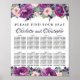 Djupa plommon ro, blommor av rosa och många djupa vilda blommor av lila skapar vackert uppe och grund gräns på detta 8-Bord sätesdiagram. Det finns mycket girighet och löv och faror. Söker efter att ditt säte är skrivet i ett fet serif-teckensnitt. Bröllop paret namn är skrivet i ett vackert skript.