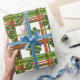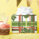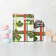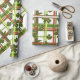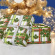 Denna julomslutning med vit bakgrund med rött och grönt plaid har papper med handmålade kapade klådor som är utspridda överst för en festlig utformning som kommer att se underbar ut under vilket Julgran som helst. Du kan göra mönster mindre eller större på den här presentfigurationen.