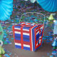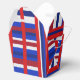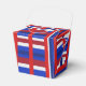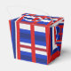 En patriotisk plaid-text i röda, vita och blå nyanser.