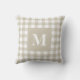 Play Tan och White Gingham Mönster med Monogram Kudde