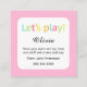 Playdate mammatelefonkort/playdateinbjudningar som presenterar ett lyckligt och att skratta solinsida ett färgrikt, pricker gränsen på bekläda. Text på baksidaen "låter lek" i färgrika brev. Nedanför anpassadetext "har din mammaappell min mamma, och vi ska uppsättningen en tid och en dag" och mallfält för childnamn, mamma namn och telefonnummer. Denna är perfekten långt för att dina ungar ska invitera en ny vän för att leka.