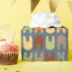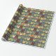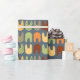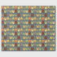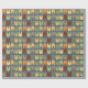 A pattern of abstract bunny-shaped silhouettes arranged in neat rows, featuring warm orange, yellow, olive green, and brown tones on a muted blue-gray background.