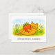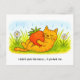Playful Cartoon Cat Hugging Big Strawberry Vykort