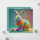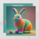 A soft, playful, cuddly knitted bunny in pastel colors with tiny yarn eggs, perfect for Easter greeting cards and spring holiday decor. The design is charming and plush, with a handmade feel and bright, warm, friendly appeal.