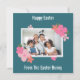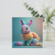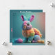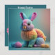 A soft, playful, cuddly knitted bunny in pastel colors with tiny yarn eggs, perfect for Easter greeting cards and spring holiday decor. The design is charming and plush, with a handmade feel and bright, warm, friendly appeal.