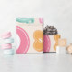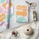 A lively pattern featuring colorful dog tags in various shapes and shades, personalized with popular dog names like "Sadie," "Scout," "Bella," and "Lucky." The tags are scattered playfully, adding a fun, personalized touch with a mix of vibrant colors and bold lettering.