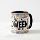 Enjoy your favorite drink with this playful Halloween plaid mug decorated with pumpkins, bats, and a witch. Perfect for seasonal mornings or as a festive gift.