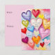 A vivid assortment of multicolored hearts is scattered across a dreamy soft-focus background. The hearts vary in size and color adding a playful and romantic ambiance.