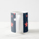 Start your day with a splash of color and fun! This bold and playful star pattern mug features a modern mix of red, white, and blue stars scattered across a deep navy background.