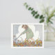 Detta vykort har en gammal barnbokillustration av en ung flicka som leker i löven på hösten. Bilden är från "Friends: A Primer".