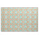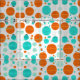 Ett överflöd av orange- och ljusblå cirklar i en modern medelhundraårssammansättning. Retroinspirerat cirkulärt mönster.