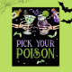 Den här Plockan Drinks i Poison Halloween poster handillustrerade spookycocktails som hålls av beney skeleton händer med två flaskor av punktion/gift omgiven av fladdermus och stjärnor i en färg palett av gröntar och lila. Du kan ändra texten. Se hela matchningssamlingen. Alla teckningar illustreras för hand och upphovsrätten skyddas för Kaitlyn Thomas.