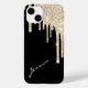 Det här glamorösa telefonfodralet har en överdel som är frostiserad med silver faux glitter-droppar. Vi tänka att det ser fantastiskt svart ut, men du kan plocka din egen bakgrund färg genom att välja "Redigera design". Ditt namn är i vitt skript diagonalt över grund. Söt!