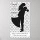 Vacker STORE poster för din bröllop-ceremoni med en vit och grått fuktig bakgrund accentuerad med en stor silhuett av en groom som lyfter sin brud av fötterna i glädje. Personlig med namn och bröllop. Grund över hela ord är "I dag kommer två familjer att bli en. Var snäll och plocka en plats, inte en sida.