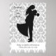 Vacker STORE poster för din bröllop-ceremoni med en vit och grått fuktig bakgrund accentuerad med en stor silhuett av en groom som lyfter sin brud av fötterna i glädje. Personlig med namn och bröllop. Grund över hela ord är "I dag kommer två familjer att bli en. Var snäll och plocka en plats, inte en sida.
