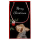 Cute Yorkshire skräcker eller Yorkie hittar en stor röd julprydnad och tänker "boll" roligt hundälskare julklapp helgdag