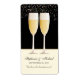 Två bubblande sprickor med champagne vin-etiketter mot en svart och gräddbaksida. Personlig med namn, datum och ett kort-meddelande.