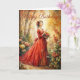 Dam i rödblommor i en skog. Passar för alla. Du kan ändra texten
