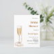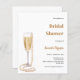 En modern, snyggt och glamorös inbjudan till en Pearls- och Prosecco-Möhippa. En vit bakgrund med ett glas, flute med gyllene bubblor och pärlor. Namn är skrivet med ett modernt handskript i stil. Anpassa och lägg till information om party. 1 lakan = 1 inbjudan tryckt kant till kant.