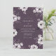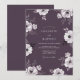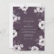 Denna design har en rik, djup plommonbakgrund som sätter en stämningsfull och sofistikerad ton för en kvällshändelse. Ömtåliga vita anemoneblommor och luftig lövverk är elegant spridda över layouten och skapar en mjuk kontrast mot den mörka bakgrunden. Färgpaletten med plommon, kol och elfenben frammanar en känsla av tidlös romantik perfekt för en höst- eller vinters tillställning.