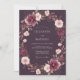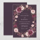Denna design har en rik plommonbakgrund prydd med ett frodigt arrangemang av akvarellblommor. Mjuka rosor i rosenskär nyans och djupa fläckar av flädermörka peonior skapar en atmosfär av romantisk elegans, perfekt för en stämningsfull kvällsfest. Paletten kompletteras med sepiafärgade bladverk och ömtåliga kvistar som ger de botaniska elementen en vintage-känsla.