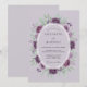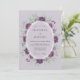 Denna design har en rik palett av djupt plommon och mjuka lavendeltoner som skapar en romantisk och sofistikerad atmosfär. Frodiga lila rosor är kapslade bland delikat salvia grön bladverk, vilket frammanar en känsla av naturlig skönhet. De blomsterformade elementen är arrangerade för att omge det centrala området med elegans och grace.
