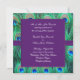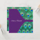 Elegant lila smaragdgrön, kunglig blå och teal påfågelsfjädrar fyrkantig bröllopsinbjudan. Lila påfågel bröllopsinbjudningar. Anpassa med ditt val av teckensnittsstil och teckensnittsfärg.