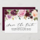 Elegant stämningsfull rustik lila plommon vårblomma botanisk bröllopskort för att spara datum med en bukett av mjuka pastellfärgade akvarellrosor och peonior i nyanser av burgunderrött, marsalarrött, vinrött, lila, plommon, rosafärgad, persika och kräm med frodiga gröna botaniska blad och eucalyptusblad och guldglittrande geometrisk ram. Ett modernt designval som är perfekt för lila plommon rosafärgade bröllop med vår- och sommarterapi. Hitta fler matchande mönster och variationer i min "blissweddingpaperie" -butik. Kontakta mig gärna för ytterligare anpassning eller matchande artiklar.