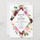 Elegant stämningsfull rustik lila plommon vårblomma botanisk "Save the date"-kort med en bukett av mjuka pastellfärgade akvarellrosor och peonior i nyanser av burgunder, marsal, vinröd, lila, plommon, rosafärgad, persika och kräm med frodiga gröna botaniska blad och eukalyptusblad och gyllene glitter geometrisk ram. Ett modernt designval som är perfekt för lila plommon rosafärgade vår- och sommarbröllop. Hitta fler matchande designs och variationer i min "blissweddingpaperie"-butik. Kontakta mig gärna för ytterligare anpassning eller matchande artiklar.