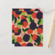 Färsk juicy mönster med illustrerade plommon och körsbär med grönt löv spridd på rosans bakgrund.