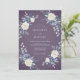 Denna förtrollande design har en djup plommonbakgrund prydd med ömtåliga penseldrag blommor. Krämiga vita och mjuka blå blommor flätas samman med gråtonade blad och skapar en elegant, konstnärlig atmosfär. En romantisk, målerisk känsla perfekt för en sofistikerad tillställning.